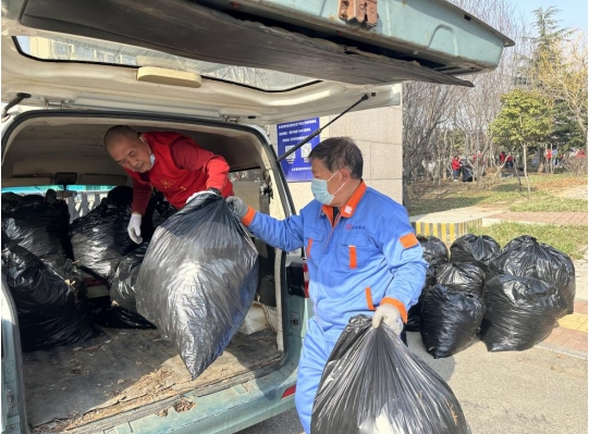 大家充分發(fā)揮團(tuán)隊(duì)的合作精神,分組勞動(dòng),有摟草的,有裝袋的,有往外清理運(yùn)輸?shù)模幪幊尸F(xiàn)著一片熱火朝天的勞動(dòng)場(chǎng)景。